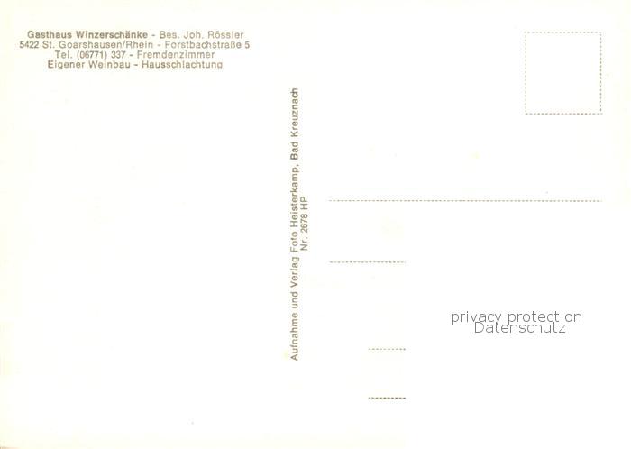 73856234 St Goarshausen Gasthaus Winzerschaenke postalisch nicht gelaufen Erhaltung siehe scans [FriedD77] KatCode: 11110007141121