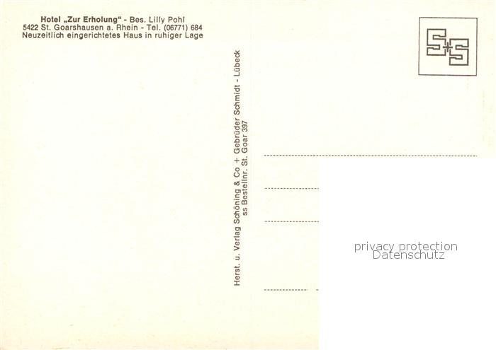 73611501 St Goarshausen Hotel Zur Erholung postalisch nicht gelaufen Erhaltung siehe scans [WerneD78] KatCode: 11110007141121