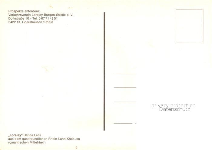 73486450 St Goarshausen Loreley Weink?nigin Bettina Lenz postalisch nicht gelaufen Erhaltung siehe scans [PaolaD17] KatCode: 11110007141121