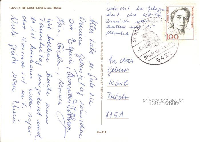 72231693 alte Postkarte St Goarshausen Loreleystadt postalisch gelaufen Erhaltung siehe scans KatCode: 11110007141121