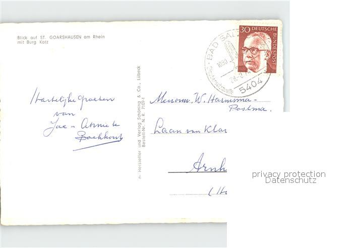 72259000 alte Postkarte St Goarshausen mit Burg Katz Rheindampfer postalisch gelaufen Erhaltung siehe scans KatCode: 11110007141121