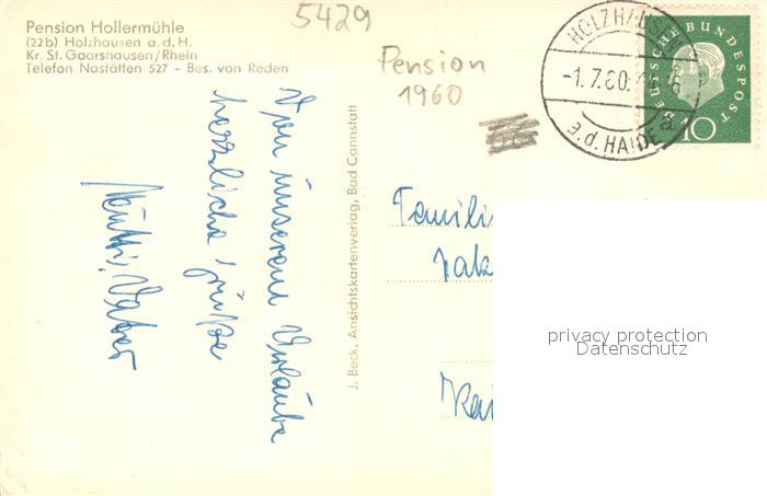 73706631 alte Postkarte St Goarshausen Pension Hollermuehle postalisch gelaufen Erhaltung siehe scans [WerneD78] KatCode: 11110007141121