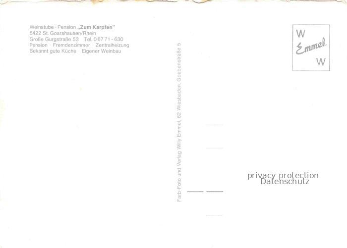 74050908 St Goarshausen Rhein Weinstube Zum Karpfen Gaststube Fahrgastschiff postalisch nicht gelaufen Erhaltung siehe scans [WerneD78] KatCode: 11110007141121