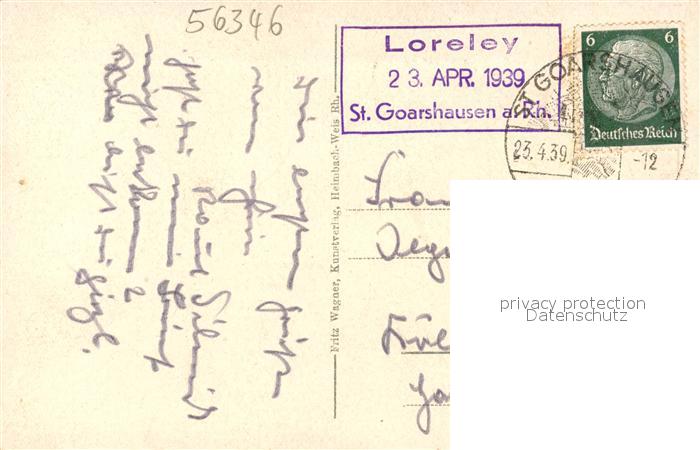 73575907 alte Postkarte St Goarshausen Rheindampfer Loreley Felsen Sage postalisch gelaufen Erhaltung siehe scans [FriedD77] KatCode: 11110007141121