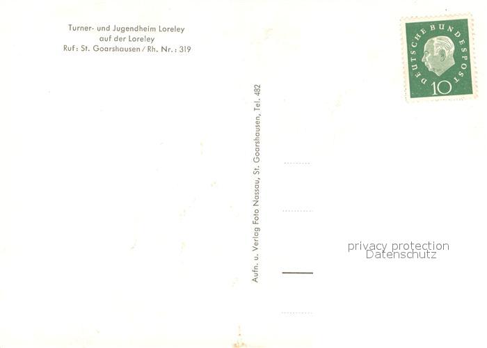 73649164 St Goarshausen Turner- und Jugendheim Loreley postalisch nicht gelaufen Erhaltung siehe scans [FriedD77] KatCode: 11110007141121