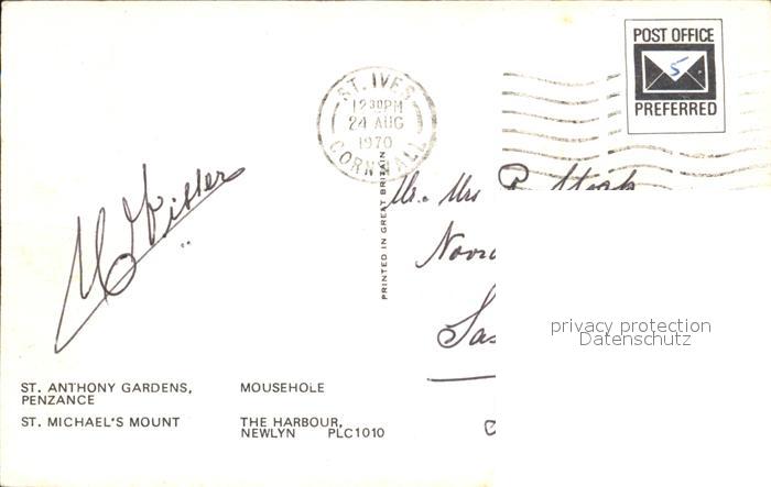 old postcard St Ives Cornwall Mounts Bay St Anthony Gardens St Michaels Mount Mousehole The Harbour Newlyn postalisch gelaufen Erhaltung siehe scans