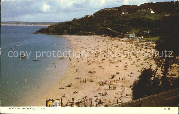 old postcard St Ives Cornwall Porthminster Beach postalisch gelaufen Erhaltung siehe scans