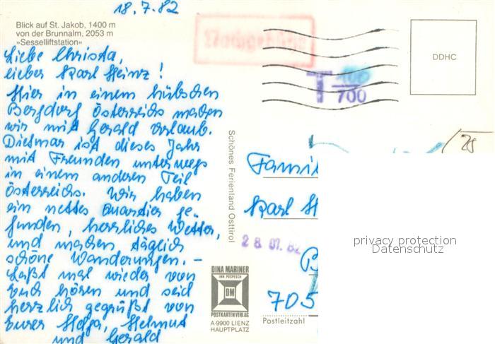 73668046 alte Postkarte St Jakob Defereggen Blick von der Brunnenalm mit Sesselliftstation postalisch gelaufen Erhaltung siehe scans [WerneD78] KatCode: 11390333070724