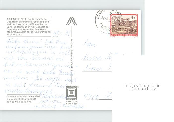 72078772 alte Postkarte St Jakob Defereggen Blumenhaus im Feld Defereggental postalisch gelaufen Erhaltung siehe scans KatCode: 11390333070724