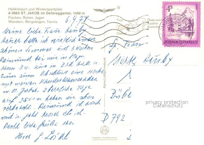 13219392 alte Postkarte St Jakob Defereggen Fliegeraufnahme postalisch gelaufen Erhaltung siehe scans [LiesaD40] KatCode: 11390333070724