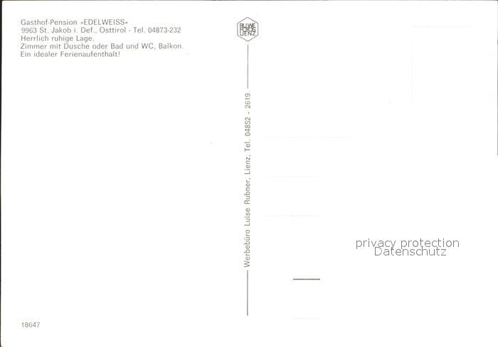 72240058 St Jakob Defereggen Gasthof Pension Edelweiss postalisch nicht gelaufen Erhaltung siehe scans KatCode: 11390333070724