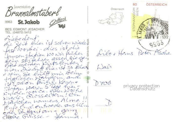 73236905 alte Postkarte St Jakob Defereggen Jausenstation Brunnalmstueberl postalisch gelaufen Erhaltung siehe scans [KathaD81] KatCode: 11390333070724
