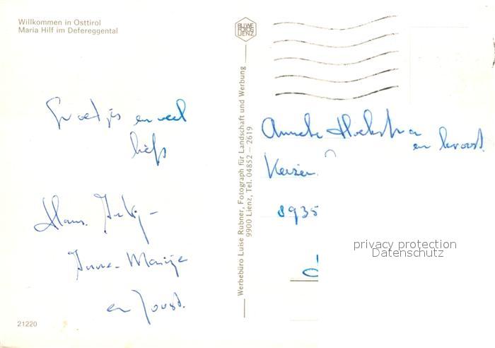 72987813 alte Postkarte St Jakob Defereggen Maria Hilf Wallfahrtsort postalisch gelaufen Erhaltung siehe scans [FriedD77] KatCode: 11390333070724