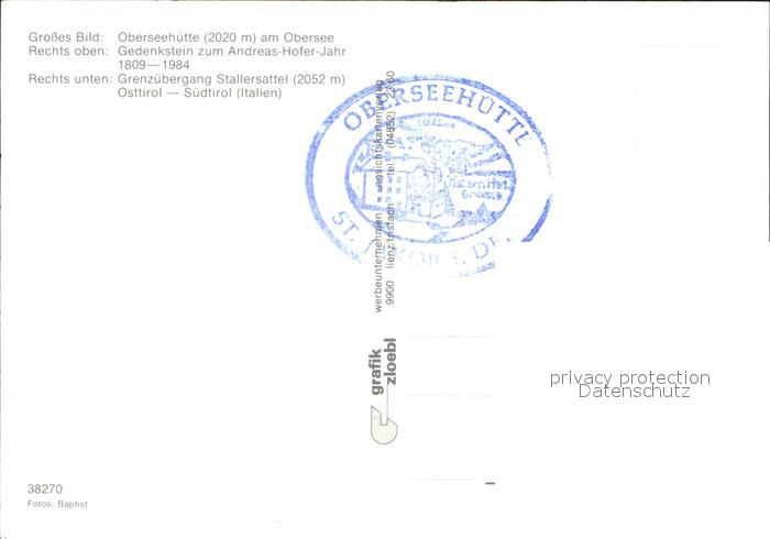 72263189 St Jakob Defereggen Oberseehuette Obersee Gedenkstein Andreas Hofer Grenzuebergang Stallersattel postalisch nicht gelaufen Erhaltung siehe scans KatCode: 11390333070724