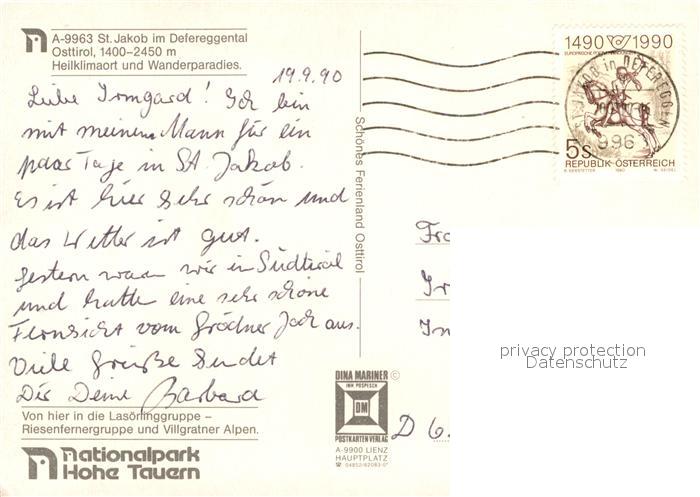 73155705 alte Postkarte St Jakob Defereggen Panorama postalisch gelaufen Erhaltung siehe scans [WerneD78] KatCode: 11390333070724