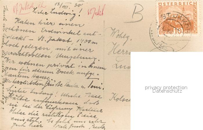 43046476 alte Postkarte St Jakob Defereggen Partie am Fluss postalisch gelaufen Erhaltung siehe scans [LiesaD40] KatCode: 11390333070724