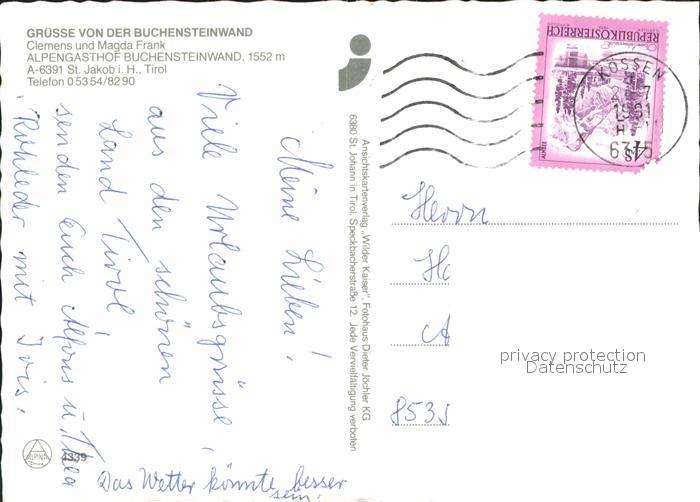71827824 alte Postkarte St Jakob Haus Alpengasthof Buchensteinwand Gipfelkreuz Kamin postalisch gelaufen Erhaltung siehe scans KatCode: 11390335070415