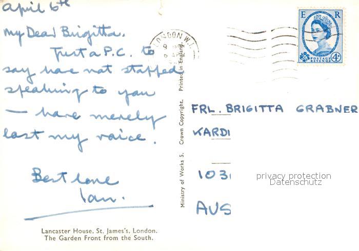 73280711 old postcard St James Kingston upon Thames Lancaster House The Garden postalisch gelaufen Erhaltung siehe scans [WerneD78] KatCode: 11570UKI2I22AX