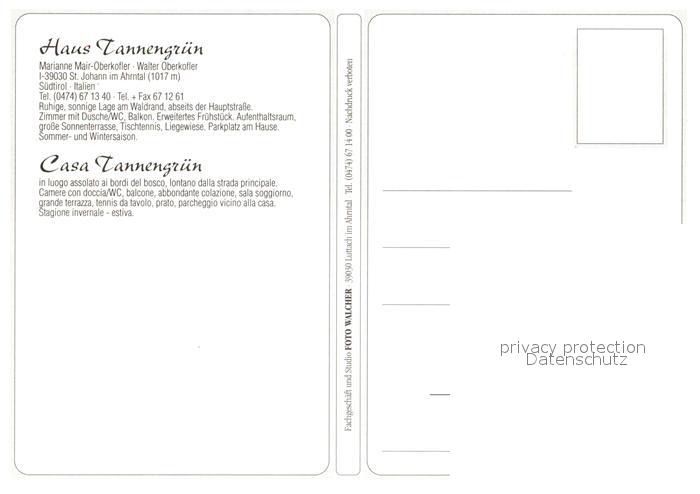 St Johann Ahrntal Gaestehaus Pension Haus Tannengruen im Sommer und im Winter Langlaufloipe postalisch nicht gelaufen Erhaltung siehe scans [FriedD77]