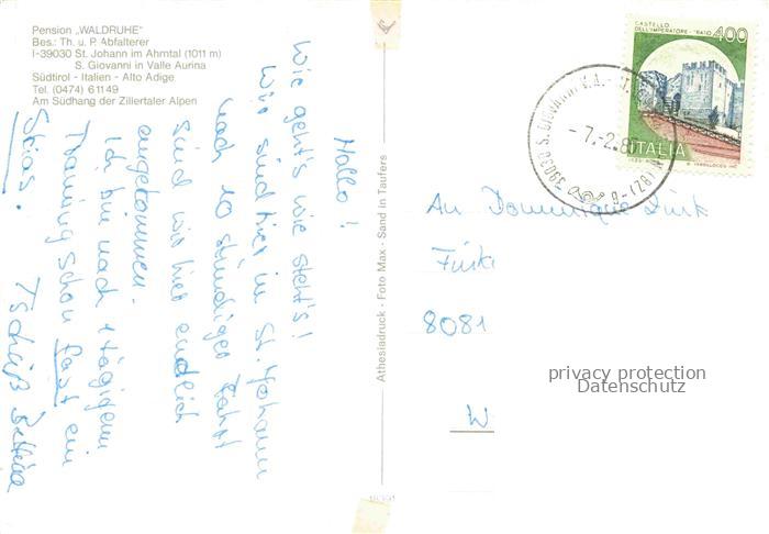 74079668 old postcard St Johann Ahrntal Suedtirol IT Pension Waldruhe postalisch gelaufen Erhaltung siehe scans [WerneD78] KatCode: 11240