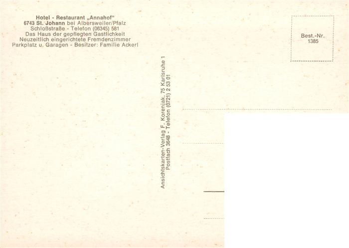 73898130 St Johann Albersweiler Hotel Restaurant Annahof Panorama Freiterrasse postalisch nicht gelaufen Erhaltung siehe scans [WerneD78] Wern Katcode 11110007337001