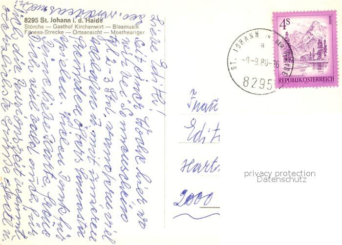 73521454 alte Postkarte St Johann Haide Stoerche Gasthof Kirchenwirt Blasmusik Fitness Panorama Mostheuriger postalisch gelaufen Erhaltung siehe scans [WerneD78] KatCode: 11390224060710