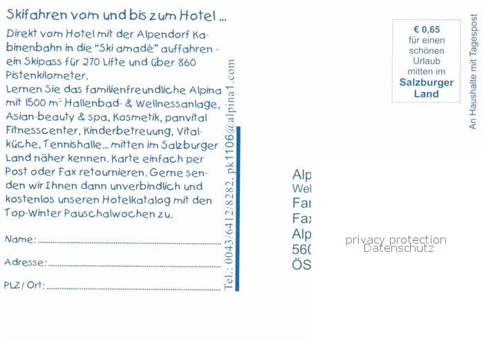 72732067 St Johann Pongau Alpina Sporthotel Winterpanorama Alpen postalisch nicht gelaufen Erhaltung siehe scans [FriedD77] KatCode: 11390