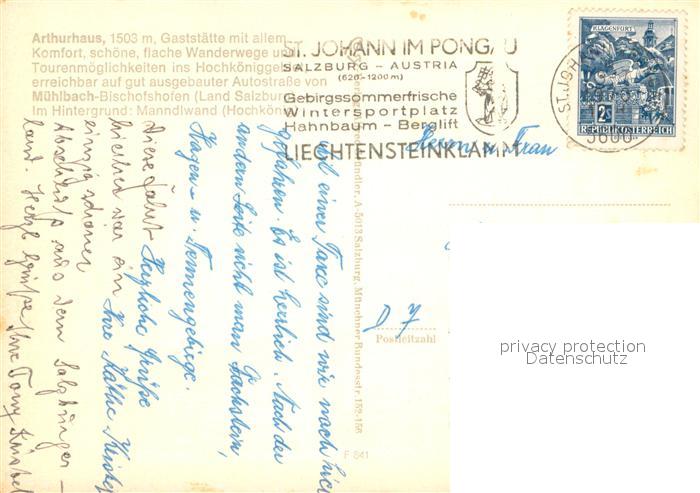 73718036 alte Postkarte St Johann Pongau Arthurhaus Gaststaette mit Mandlwand postalisch gelaufen Erhaltung siehe scans [WerneD78] KatCode: 11390