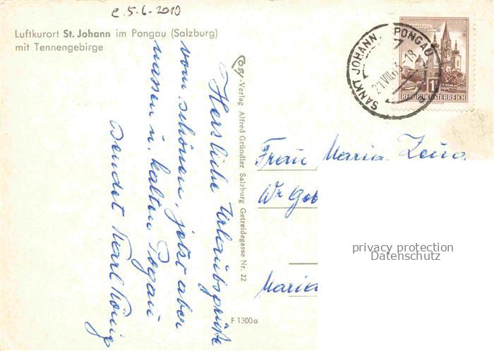 74137437 alte Postkarte St Johann Pongau AT Panorama mit Kirche und Tennengebirge postalisch gelaufen Erhaltung siehe scans [WerneD78] KatCode: 11390322050418