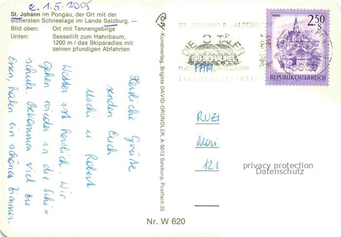 74137431 alte Postkarte St Johann Pongau AT Panorama mit Tennengebirge Sessellift Skiparadies postalisch gelaufen Erhaltung siehe scans [WerneD78] KatCode: 11390322050418