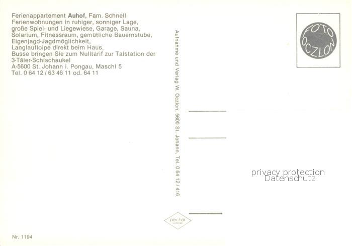 73858653 St Johann Pongau Ferienappartement Auhof postalisch nicht gelaufen Erhaltung siehe scans [WerneD78] KatCode: 11390