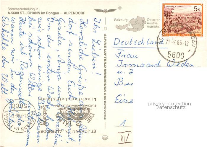73587175 alte Postkarte St Johann Pongau Fliegeraufnahme postalisch gelaufen Erhaltung siehe scans [WerneD78] KatCode: 11390