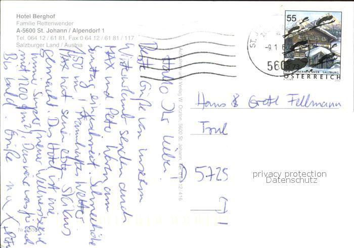 12550824 alte Postkarte St Johann Pongau Hotel Berghof postalisch gelaufen Erhaltung siehe scans [NatalD47] KatCode: 11390