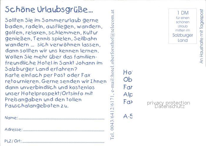 12394020 St Johann Pongau Hotel Oberforsthof postalisch nicht gelaufen Erhaltung siehe scans KatCode: 11390