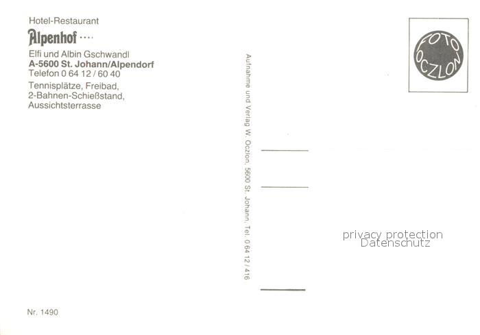73360655 St Johann Pongau Hotel Restaurant Alpenhof Terrasse Swimming Pool Tennisplatz Alpenblick postalisch nicht gelaufen Erhaltung siehe scans [FriedD77] KatCode: 11390