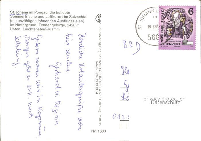 72418972 alte Postkarte St Johann Pongau Luftkurort Salzachtal Tannengebirge postalisch gelaufen Erhaltung siehe scans KatCode: 11390