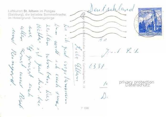 72636983 alte Postkarte St Johann Pongau mit Tennengebirge postalisch gelaufen Erhaltung siehe scans [WerneD78] KatCode: 11390