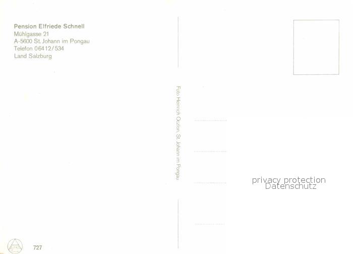 72905509 St Johann Pongau Pension Elfriede Schnell postalisch nicht gelaufen Erhaltung siehe scans [NatalD47] KatCode: 11390