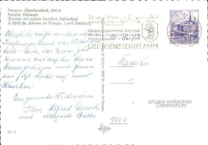 72479530 alte Postkarte St Johann Pongau Pension Oberforsthof postalisch gelaufen Erhaltung siehe scans KatCode: 11390