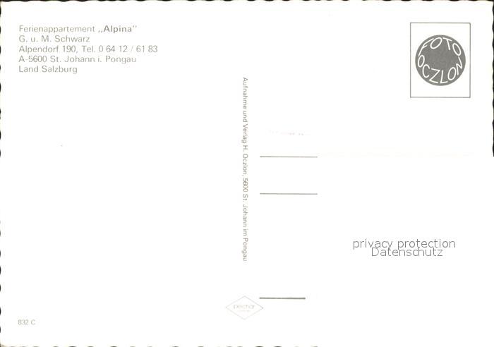 42923831 St Johann Pongau Salzburg Ferienappartement Alpina postalisch nicht gelaufen Erhaltung siehe scans [WerneD48] KatCode: 11390