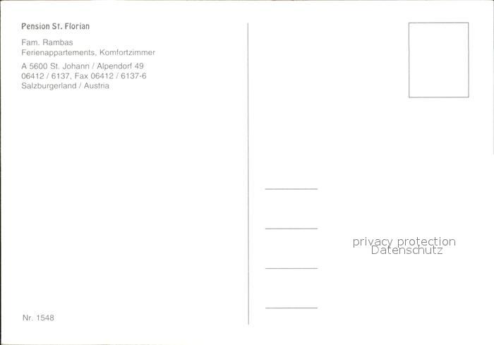 72079983 St Johann Pongau Salzburg Pension Sankt Florian postalisch nicht gelaufen Erhaltung siehe scans KatCode: 11390