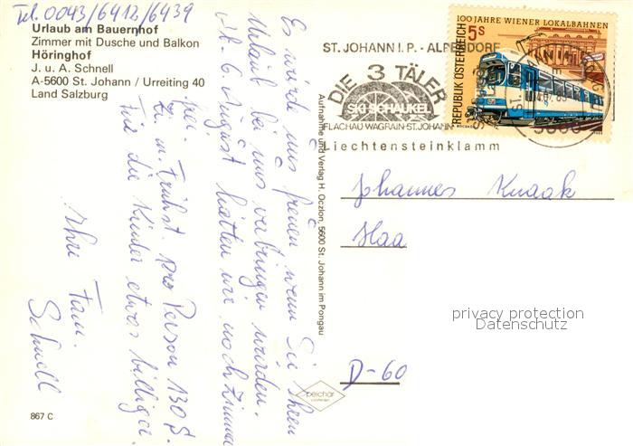 73070154 alte Postkarte St Johann Pongau Urlaub am Bauernhof Hoeringhof postalisch gelaufen Erhaltung siehe scans [FriedD77] KatCode: 11390