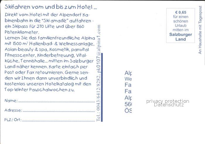 72499430 St Johann Pongau Wellness- und Sporthotel Alpina postalisch nicht gelaufen Werbekarte (keine Postkarte) Erhaltung siehe scans KatCode: 11390