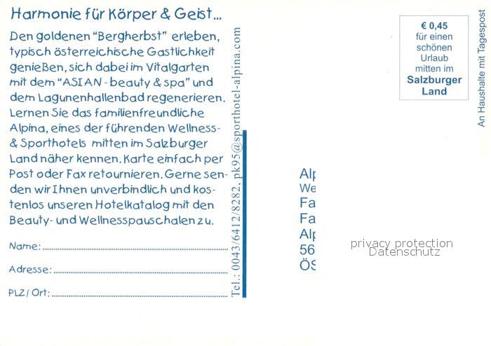 73743600 St Johann Pongau Wellness und Sporthotel Alpina Restaurant Swimming Pool Wandern Bergbahn postalisch nicht gelaufen Erhaltung siehe scans [FriedD77] KatCode: 11390