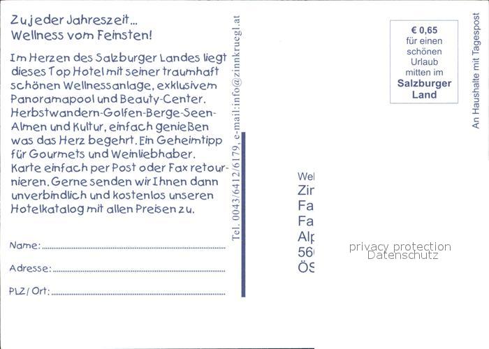 72517936 St Johann Pongau Zinnkruegl Wellness Gourmet Hotel postalisch nicht gelaufen Werbekarte (keine Postkarte) Erhaltung siehe scans KatCode: 11390