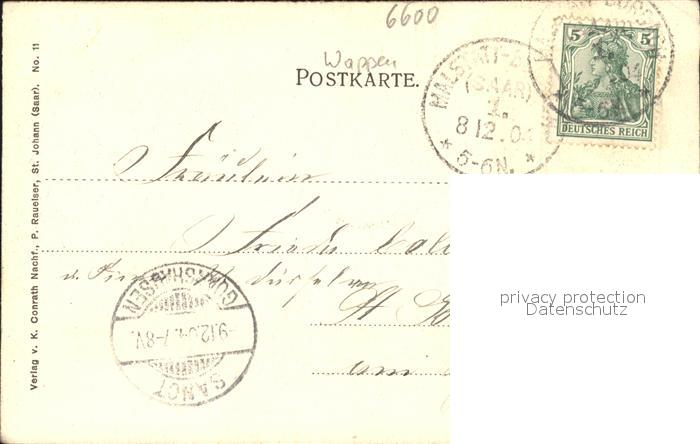 41791370 alte Postkarte St Johann Saarbruecken Partie aus dem Volksgarten Holzbruecke Schwan Wappen postalisch gelaufen Erhaltung siehe scans KatCode: 11110010041100