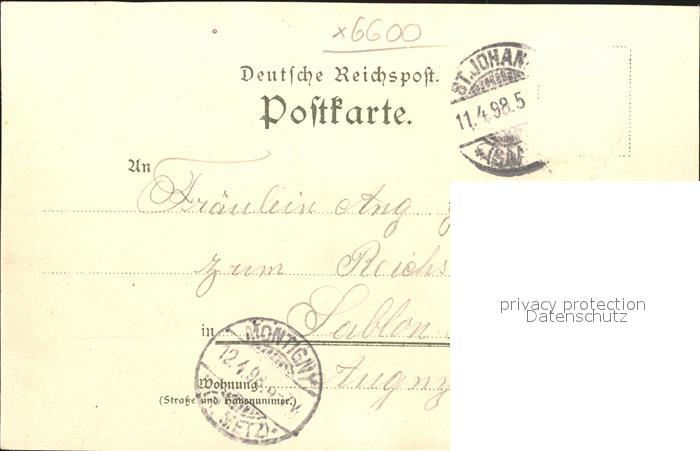 41786675 alte Postkarte St Johann Saarbruecken Reichsstrasse Spichernberg Saarpartie Neue Bruecke Ehrenthal Denkmal Reichspost postalisch gelaufen KatCode: 11110010041100