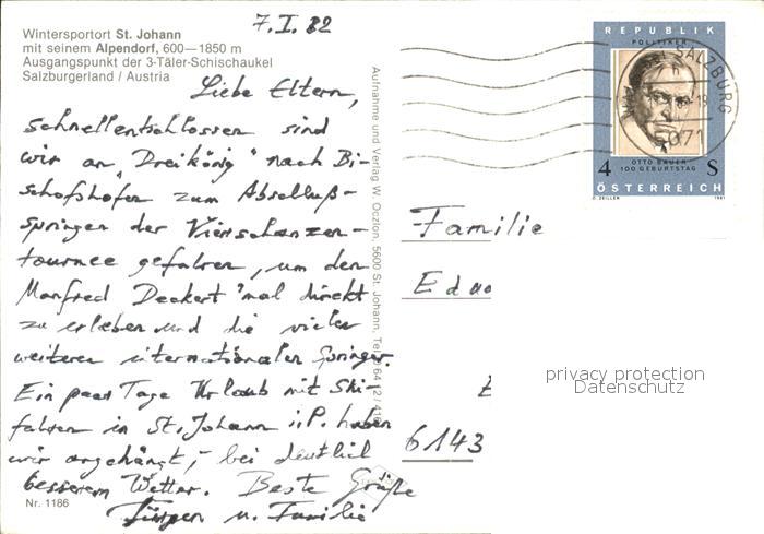72601708 alte Postkarte St Johann Tirol Alpendofr Skigebiet postalisch gelaufen Erhaltung siehe scans [LiesaD40] KatCode: 11390335070416