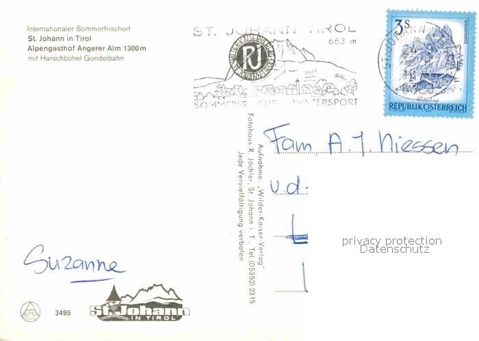 72623537 alte Postkarte St Johann Tirol Alpengasthof Angerer Alm Seilbahn postalisch gelaufen Erhaltung siehe scans [NatalD47] KatCode: 11390335070416