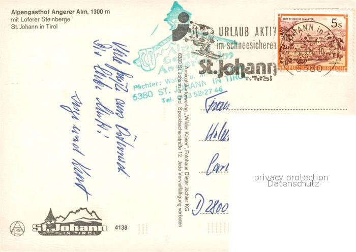 73518351 alte Postkarte St Johann Tirol Alpengasthof Angerer Alm postalisch gelaufen Erhaltung siehe scans [KathaD81] KatCode: 11390335070416